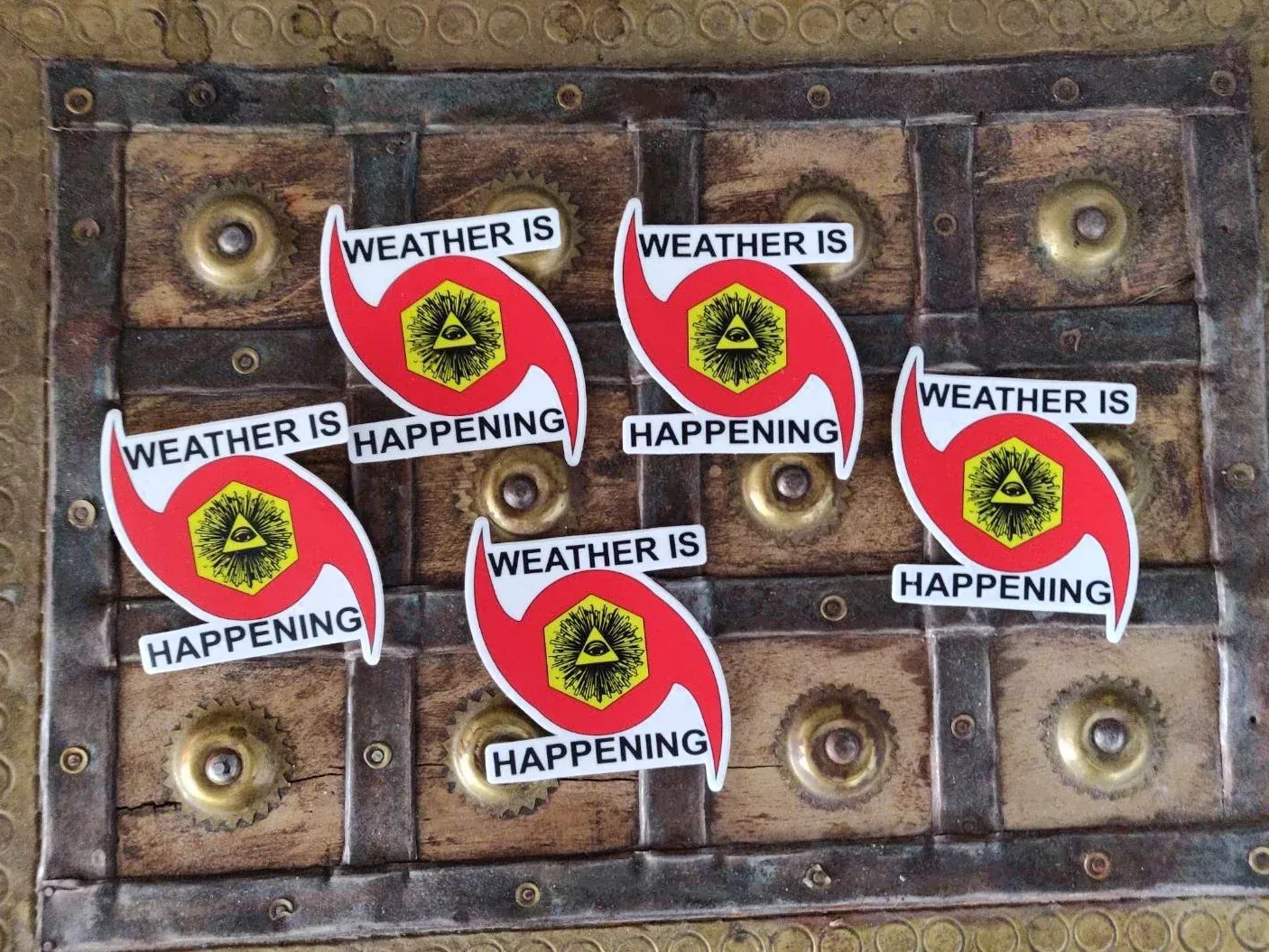 5 PACK: 3" STICKERS -- WEATHER IS HAPPENING ADHESIVE EMBLEMS