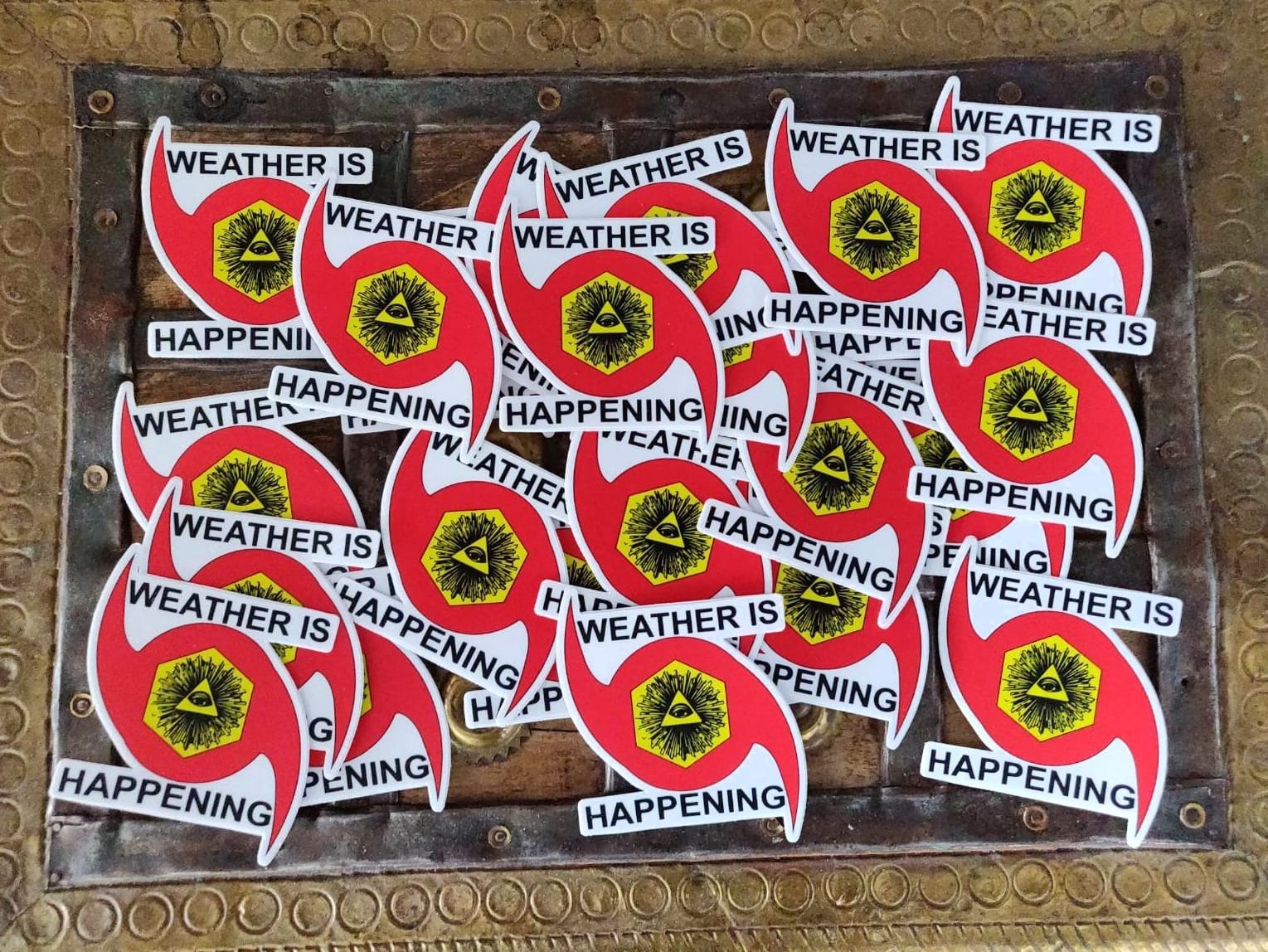 25 PACK: 3" STICKERS -- WEATHER IS HAPPENING ADHESIVE EMBLEMS